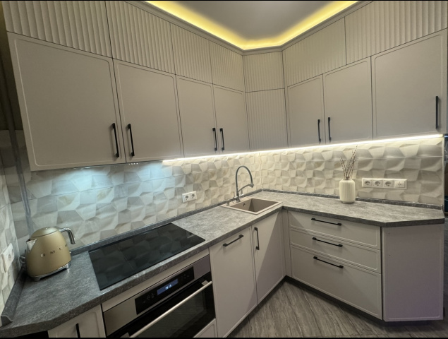 Кухня с фасадами с эффектом плиссировки