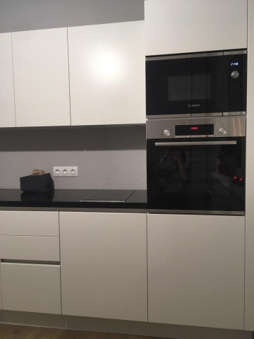 Но сборка - это было что то (в хорошем смысле :) ) В назначенный день поступил звонок, что сборка отменяется, т.к. один из сборщиков сорвал спину на предыдущем заказе. Мы, конечно, расстроились.. Новый год на носу, встречать, сидя на полу, ой как не хотелось.. Однако через час перезвонили, сборщик едет (один). Приехал Виталий, за"оставшееся" (разрешенное законом для "пошуметь") время собрал все шкафы (без техники и фасадов). Напомню, работал ОДИН. На следующий день уже вдвоем с Александром (который приехал под обезболивающим) доделали остальное: врезали мойку, поставили посудомойку, духовой шкаф, нашу вытяжку, все подключили. Ребята разбираются во всем, сантехника, электрика, работа по дереву.. Все было выверено до миллиметра (я даже устал ждать, пока они все зазоры выведут в ноль :) ). Пока не вывели,не успокоились ))