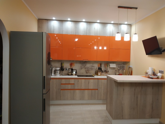 Необычная мандариновая кухня в сталинке
