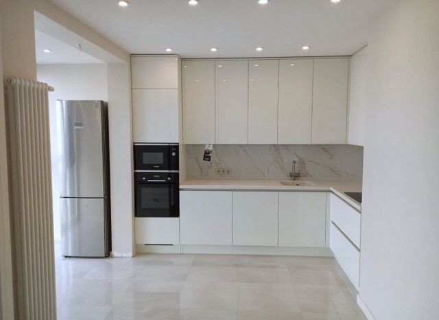 Пудрово-белоснежная П-образная кухня
