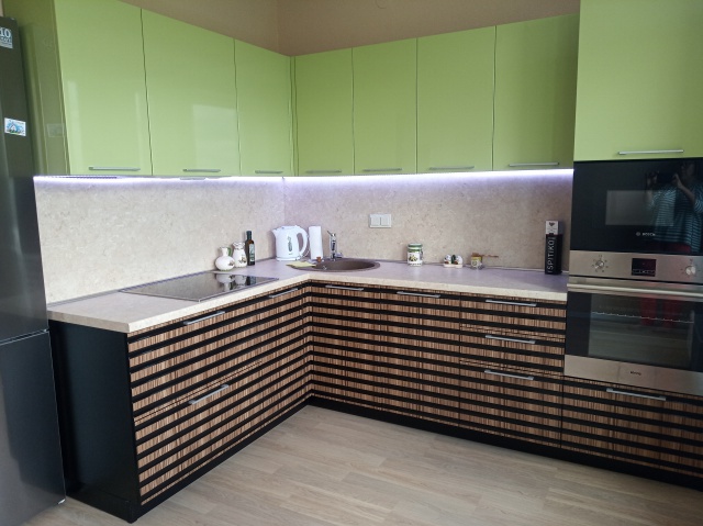 Природная кухня с вертикальной фрезеровской на фасадах