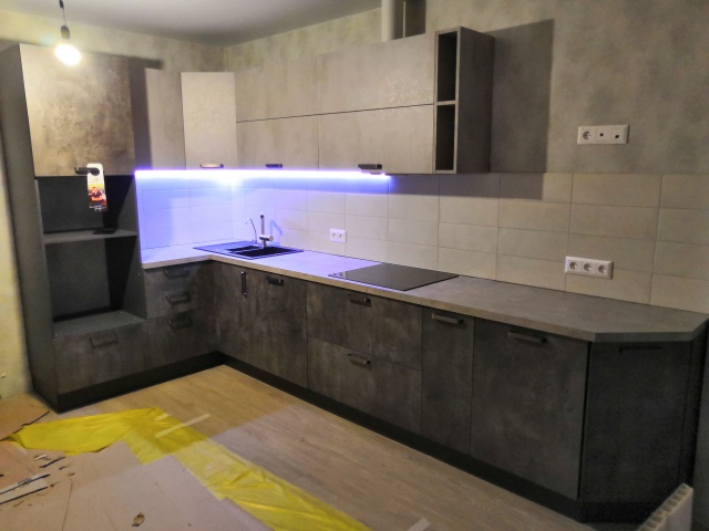 Установкой занимались Устименко Андрей и Виктор. Первое что меня удивило при встрече, так это 3 огромных ящика с инструментами, которые Андрей привез на тележке))) После Андрей просчитал приблизительную стоимость доп. работ и приступил к работе. Кухню собирали до вечера и когда пришло время принимать работу, придраться было не к чему. Все ящики были идеально отрегулированы, зазоры между дверцами одного размера, подсветка установлена, всё работает плавно как часы. И что не мало важно, помещение было убрано!