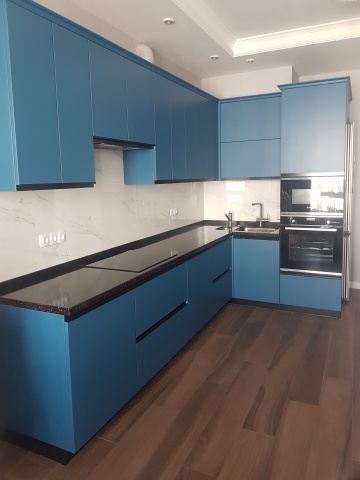 Г-образная кухня с бархатистыми фасадами
