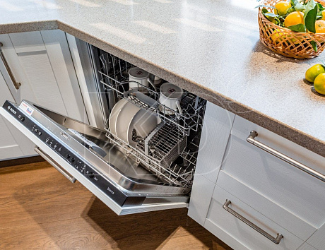 Столешницы для гарнитуров производят из ударопрочных материалов, устойчивых к воздействию влаги. Как правило, это керамика, искусственный и натуральный камень, высокопрочный пластик HPL.