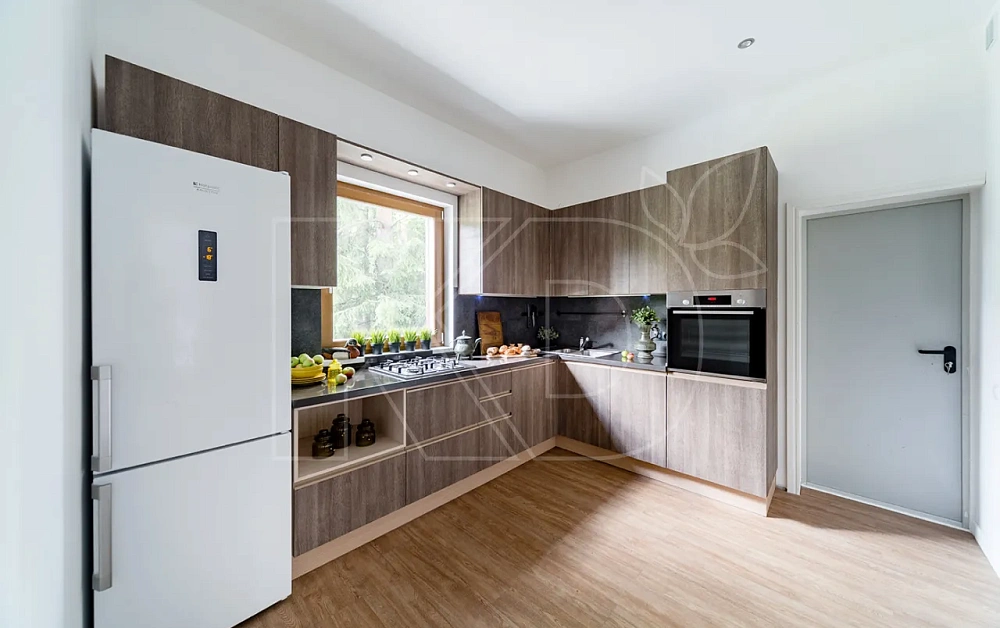 Ранее отделка под дерево была очень популярной в интерьере кухни, она создавала теплую и уютную атмосферу. Однако сегодня дизайнеры всё чаще используют другие материалы, такие как матовый или глянцевый пластик, стекло, металл и искусственные материалы, которые обладают большей прочностью, легкостью в уходе и разнообразием отделки.