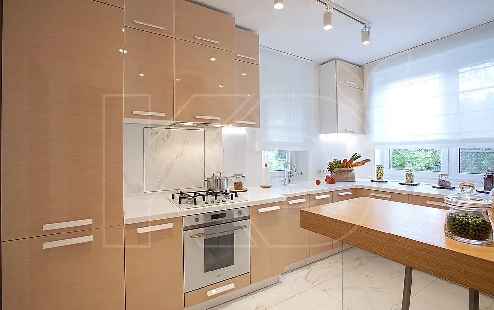 Размер и компоновка. Необходимо заранее измерить помещение и учесть расположение окон, дверей и прочих элементов, чтобы выбрать оптимальную конфигурацию. Чтобы не совершить ошибку при выборе, лучше всего заказать кухню по индивидуальным размерам.