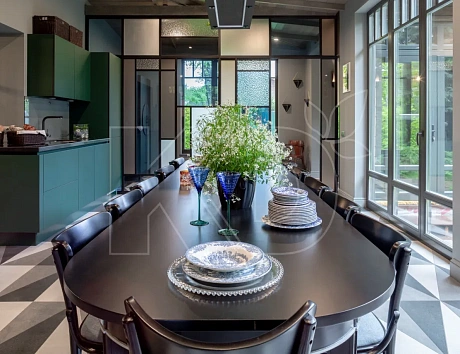 Хотите совместить кухню с гостиной в загородном доме? Расскажем о преимуществах, такого решения, нюансах и способах зонирования.