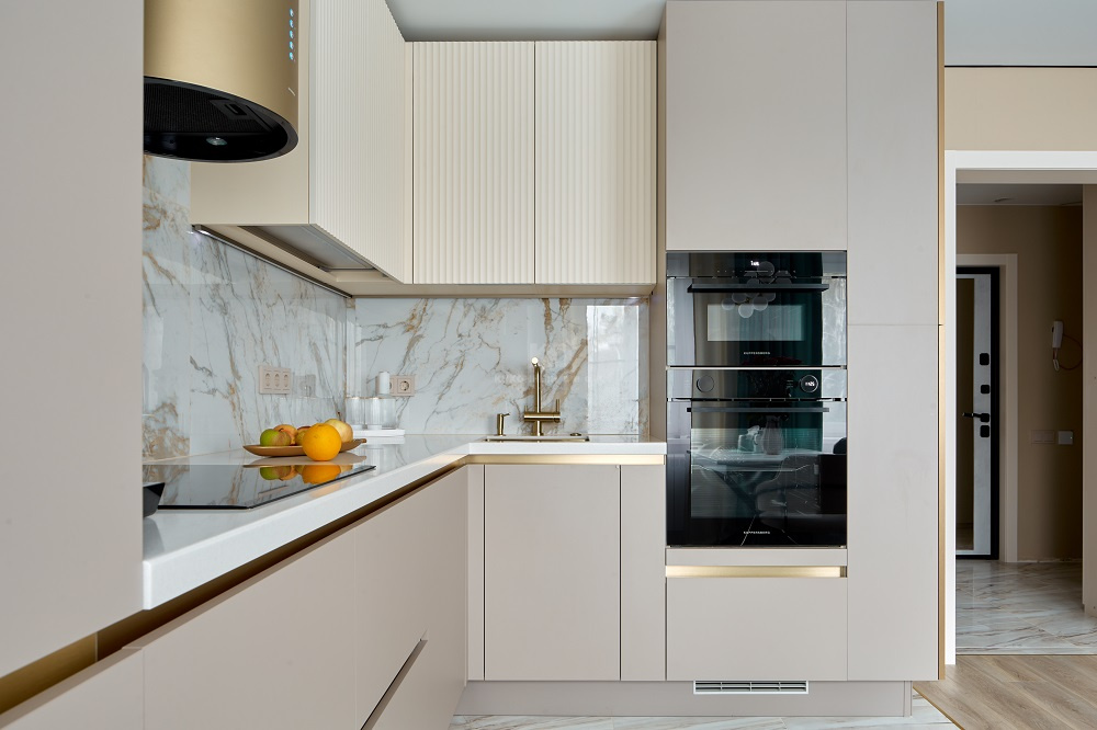 В таких случаях приходится адаптировать параметры кухонного гарнитура. Можно изменить высоту напольных кухонных шкафов, глубину фасадов для кухни, а также варьировать длину кухни в зависимости от особенностей помещения. Именно так рождаются проекты, где учитываются привычки и образ жизни семьи, а не только средние размеры кухни.