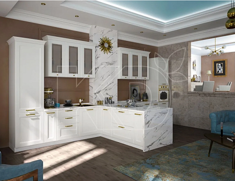 Белые классические кухни в ассортименте фабрики «Кухонный двор»