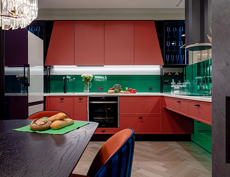 КСТАТИ: «Хамелеон» наносится на кухонные фасады в несколько слоёв по особой технологии. Благодаря этому, каждая кухня, выкрашенная таким лакам, переливается совершенно уникальной палитрой. Двух одинаковых гарнитуров в цвете «Хамелеон» попросту не существует!