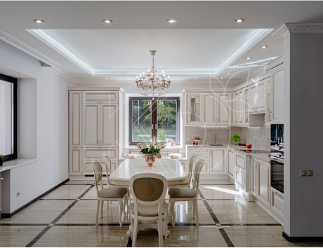 Классика выделяется на фоне остальных моделей строгими прямыми линиями, лаконичными оттенками и минимум декора. Гарнитуры в таком стиле чаще всего выполняются из дорогостоящих натуральных материалов, украшаются резьбой, стеклянными вставками и позолотой.