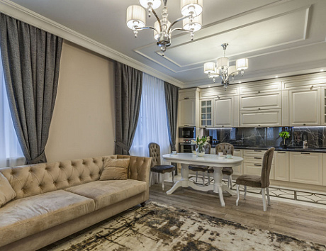 Для небольших помещений подходят бежевые кухни. Подобные модели сохраняют свет и воздушность пространства. При этом желательно, чтобы шкафы были полностью гладкими, без декоративных вставок. Очень хорошо смотрятся такие версии как в монохроме, так и в комбинации с элементами других оттенков – красным, черным или стальным.