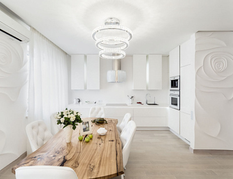 Визуальное расширение площади. Белые кухни такого типа отражают естественный свет, тем самым зрительно увеличивая пространство.