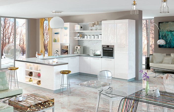 Интерьер кухни в белом цвете