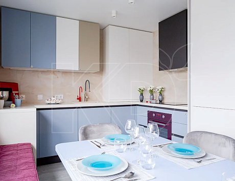 • Параллельная. Подобная конфигурация подразумевает расположение кухни у противоположных стен. Например, мойка и плита могут находиться с одной стороны, а холодильник и шкафы – с другой. В этом случае важно оставить между сторонами расстояние как минимум 1,5 метра – оно потребуется для комфортного нахождения в комнате.
