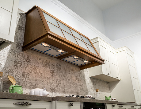 Конструкция из нескольких светильников и шинопровода станет оптимальным решением. Трек будет идти вдоль кухни, поэтому можно будет повесить светильники так, чтобы направить свет на нужные зоны. К примеру, два трека будут смотреть на обеденный стол, другие два трека – на столешницу и зону приготовления блюд, еще два трека – на торцевые части.