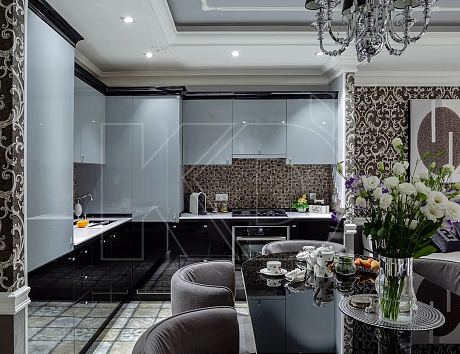 Кроме образцов, представленных в каталоге, бренд может изготовить кухню с декорированием глянцем и фрезеровкой на заказ по созданному с клиентом дизайн-проекту.