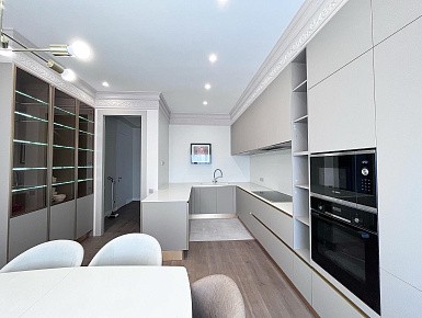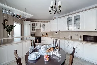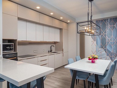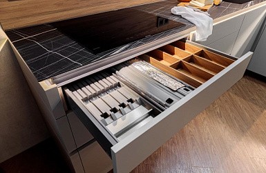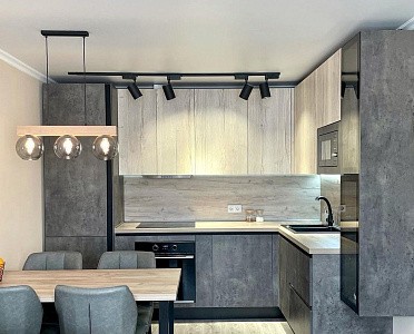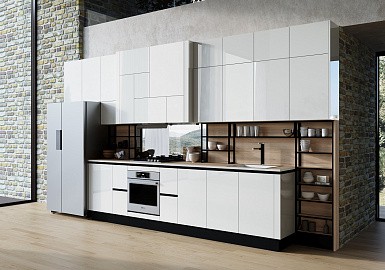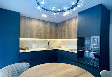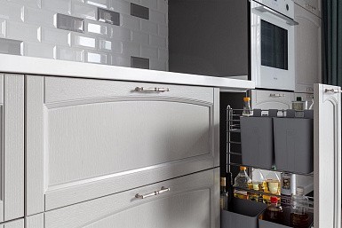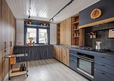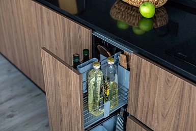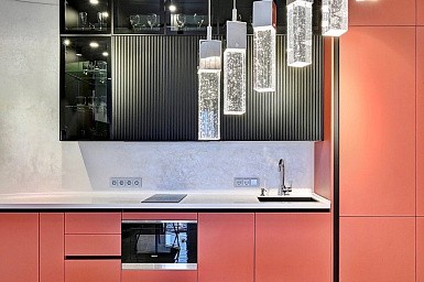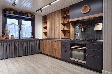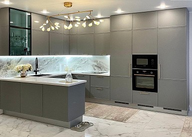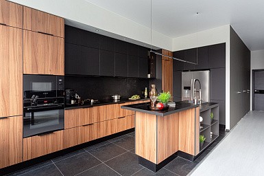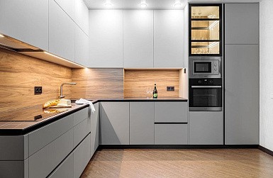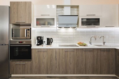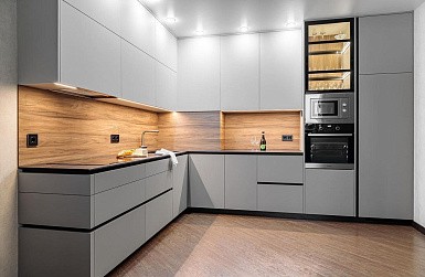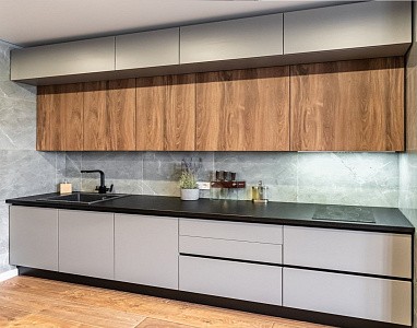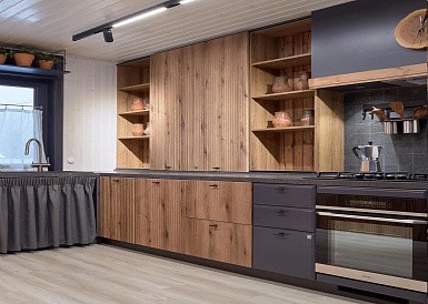 Еще один актуальный вариант кухни – это шпонированная модель. Такие гарнитуры могут быть выполнены в любом стиле – от классики до модерна. Натуральный шпон позволяет сделать кухню прочной и эстетичной, что повышает ее популярность среди потребителей.