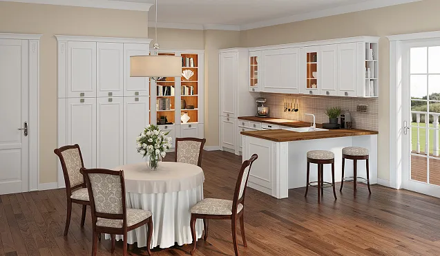 Массив для гарнитура выбирают, если хозяева не собираются часто заниматься ремонтами, мечтают о создании респектабельного интерьера, отдают предпочтение экологичным технологиям и природным материалам.
