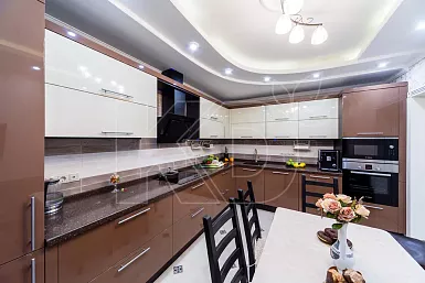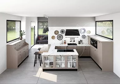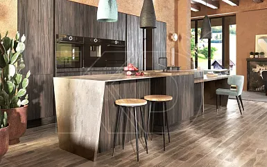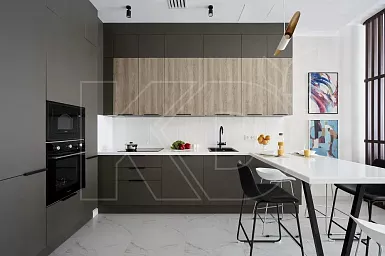 • Широкий ассортимент. Модели в коричневых тонах могут быть линейными, островными, П-образными, угловыми, полуостровными.