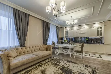• Визуальное расширение пространства. Фасады в бежевых тонах отражают солнечные лучи, тем самым увеличивая количество света в комнате.