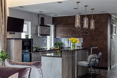 Стиль, в котором выполнена коричневая кухня, должен соответствовать дизайну интерьера. Если пространство отличается скромными размерами, лучше остановиться на минималистичной модели. Гладкие фасады без декора и простые формы не создадут ощущения перегруженности и затененности. Для более просторного помещения можно подобрать классическую кухню или другую модель с эффектным декором.