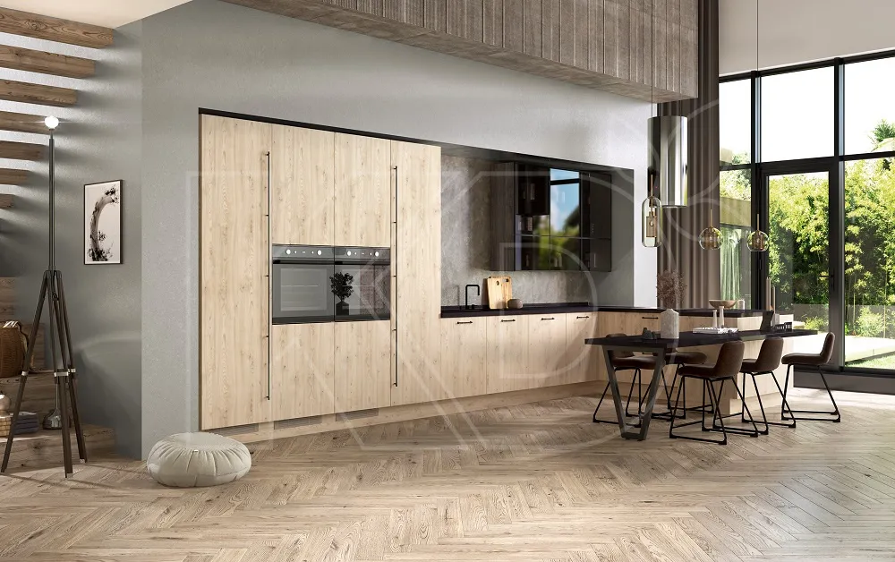 Компания «Кухонный Двор» производит кухни на заказ из натуральной древесины бука, дуба и ясеня, а также качественного МДФ. Преимуществами наших гарнитуров являются следующие показатели: