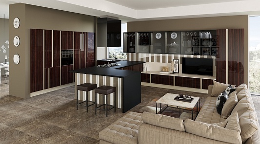 Стремясь подчеркнуть лаконичность дизайна, многие разработчики кухонь даже исключают из проекта такой необходимый атрибут, как дверные ручки. Вместо них используются инновационные системы открывания, например, Space Line. Чтобы получить доступ к внутреннему содержимому ящичка или шкафа, нужно лишь слегка нажать на его фронтальную поверхность. Такая мебель с безупречно гладкими фасадами буквально сливается с окружающим пространством, создает ощущение гармоничного единства в интерьере.