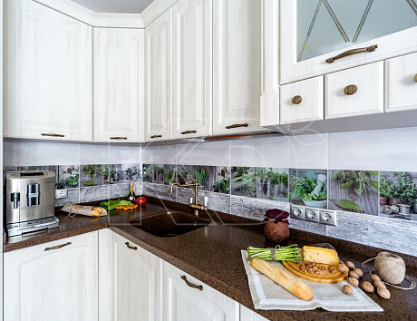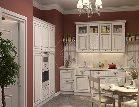 Такие гарнитуры обычно создаются в светлых тонах. Нередко в них присутствует нефункциональный декор, который не приветствуется при создании интерьеров в смежных направлениях.