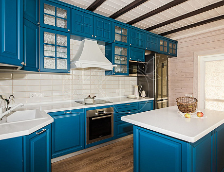 Данный цвет имеет множество оттенков, и каждый из них обладает собственным воздействием на интерьер. Давайте рассмотрим наиболее распространенные тона, которые используют при создании кухонной мебели. Индиго. Гарнитур темно-синего цвета легко вписать практически в любое стилистическое решение, так как он сочетается с разными текстурами и материалами. Кобальт. Насыщенный и самодостаточный цвет, партнером которого могут выступать серый, белый или кремовый. Бирюза. Этот оттенок добавит помещению немного свежести и прохлады. Поэтому он идеален для помещений на солнечной стороне, в которых очень жарко весной и летом.