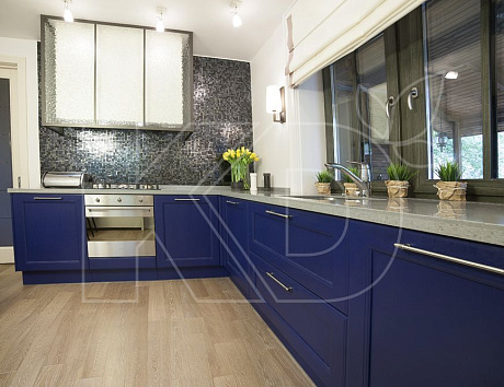 Темные оттенки синего наиболее уместны в стилях хай-тек и модернизм. Присутствие хромированных элементов и глянцевых поверхностей раскрывают возможности цвета, подчеркивают его глубину и выразительность. Прекрасно будет смотреться классический гарнитур с фасадами лазурного или кобальтового оттенка. Презентабельности такой мебели добавляют позолоченные ручки, резьба, рамки. Нельзя забывать о том, насколько выразительно выглядят синие кухни в интерьере, оформленном в стиле прованс. При этом мебель лучше выбрать в бирюзовых или васильковых тонах. Растения на подоконниках, льняные шторы и скатерти подчеркнут нежность и красоту этих оттенков.