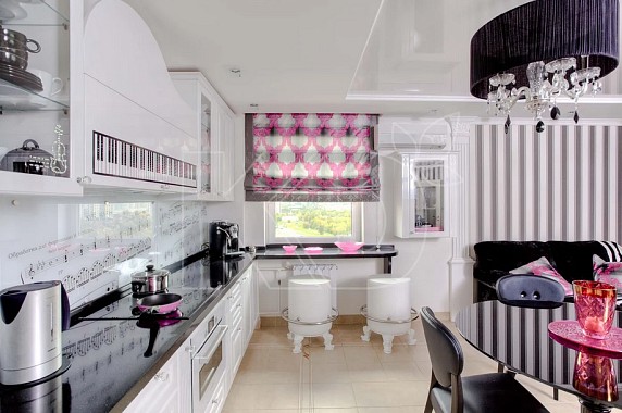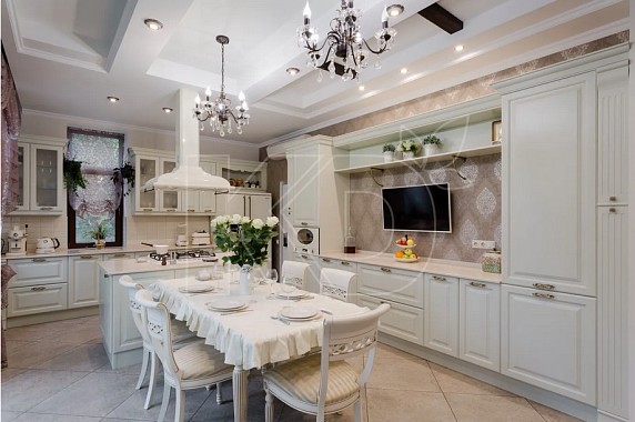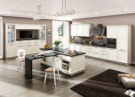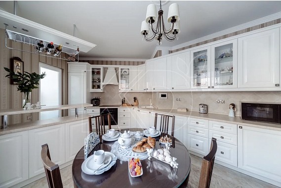 Вам нравится чувство симметрии и изысканный декор классических гарнитуров, но кажется, что такое решение смотрится слишком консервативно? В таком случае обратите внимание на неоклассику. Подобные кухни выполняют из натурального массива, шпона, экомассива, украшая их резьбой, колоннами и витражами, фурнитурой с кристаллами Swarovski. Обычно они изготовлены с менее строгим соблюдением симметрии и выглядят легкими и изящными благодаря окраске в светлые пастельные оттенки. Оригинальным вариантом станет кухонная мебель с покрытием из отражающей свет ультраглянцевой эмали – она придаст современный вид самой строгой классической кухне.