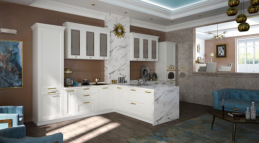 Преимущества угловой белой кухни