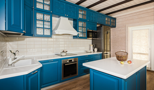 Важно не перегружать пространство, даже если оно больших размеров. Принцип правильной расстановки кухонного гарнитура и островка можно посмотреть на дизайнерском мебельном сайте.