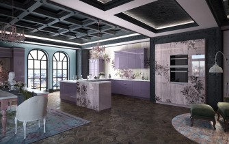 - Стилистическое разнообразие. Для фиолетового найдется успешное воплощение как в классике, так и в современности. Холодные тона хорошо смотрятся в скандинавском стиле. Теплым найдется место в провансе. Нео-классика не менее хорошо подходит для кухни в фиолетовом цвете.